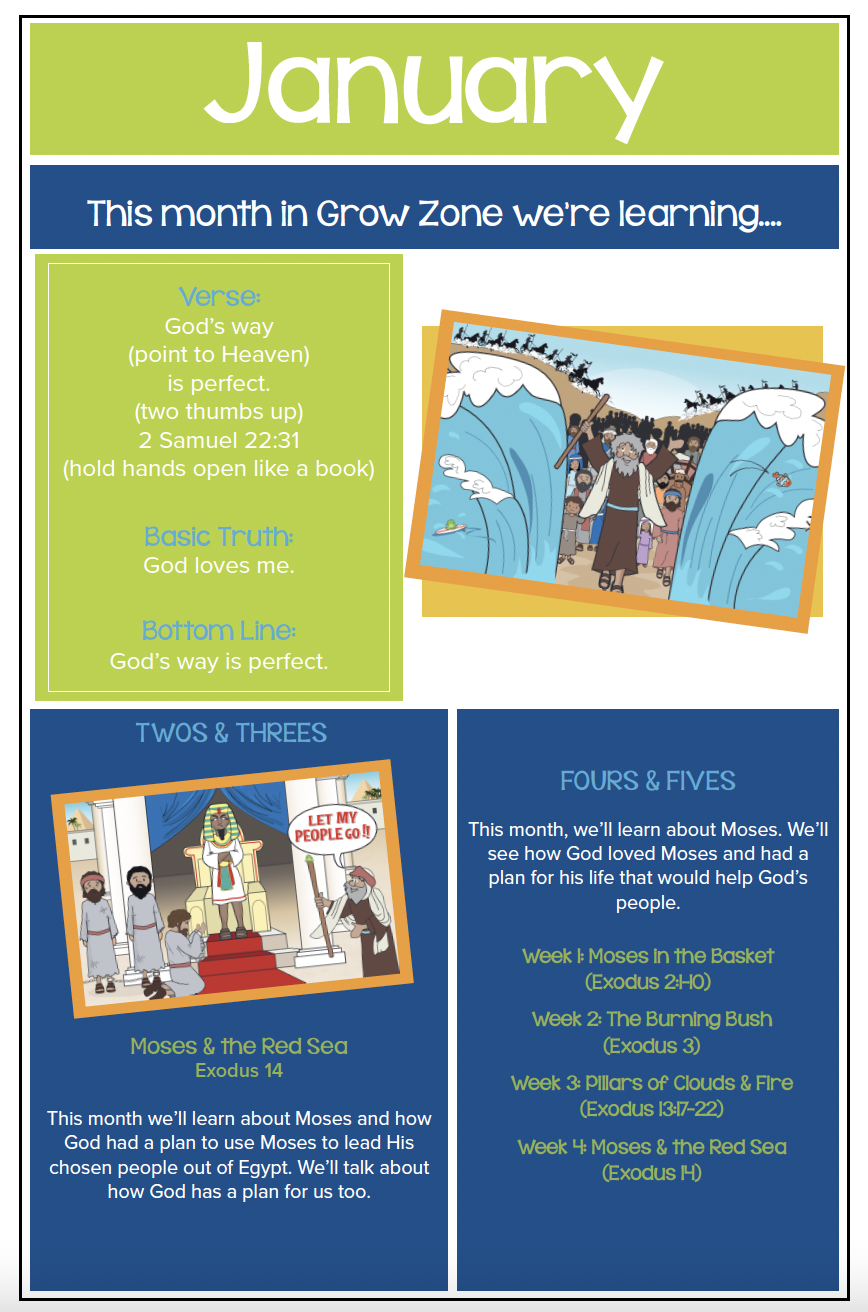 Whether we’re rocking tiny babies, coloring with two-year-olds, or singing worship songs with four-year-olds, everything we do in Grow Zone reflects these four basic truths: